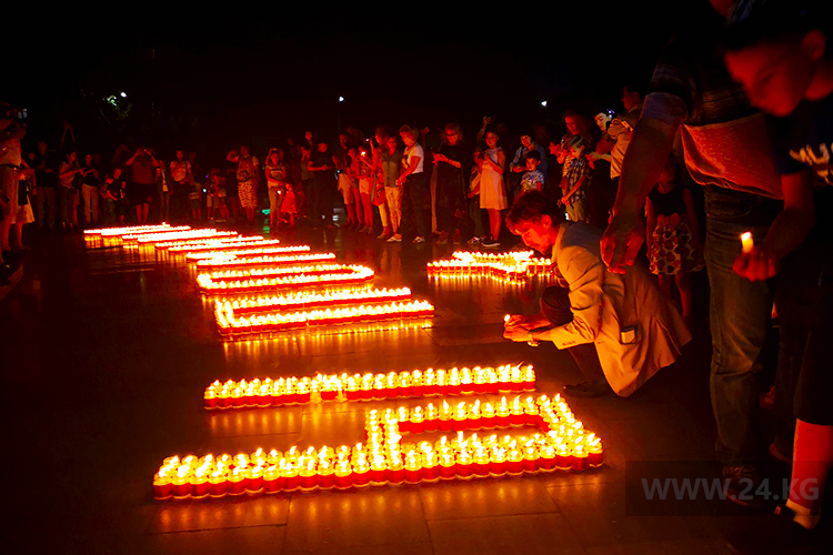 В Бишкеке на площади Победы прошла традиционная патриотическая акция "Свеча памяти", приуроченная к 77-й годовщине начала Великой Отечественной войны.