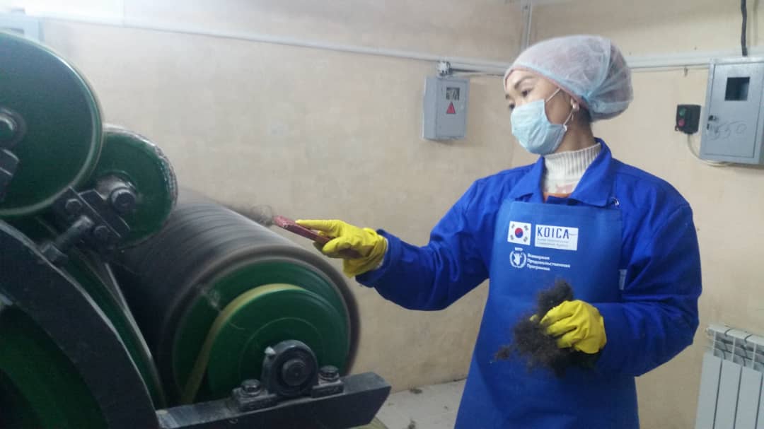 Новый шерстеперерабатывающий цех позволит сельчанам производить разнообразную продукцию из шерсти, например, шерстяное полотно в промышленных объемах. Цех в айыльном округе Мирмахмудов мощностью переработки 40-100 килограммов шерсти в день обеспечит рабочими местами от девяти до 20 человек из малоимущих семей в зависимости от сезона.