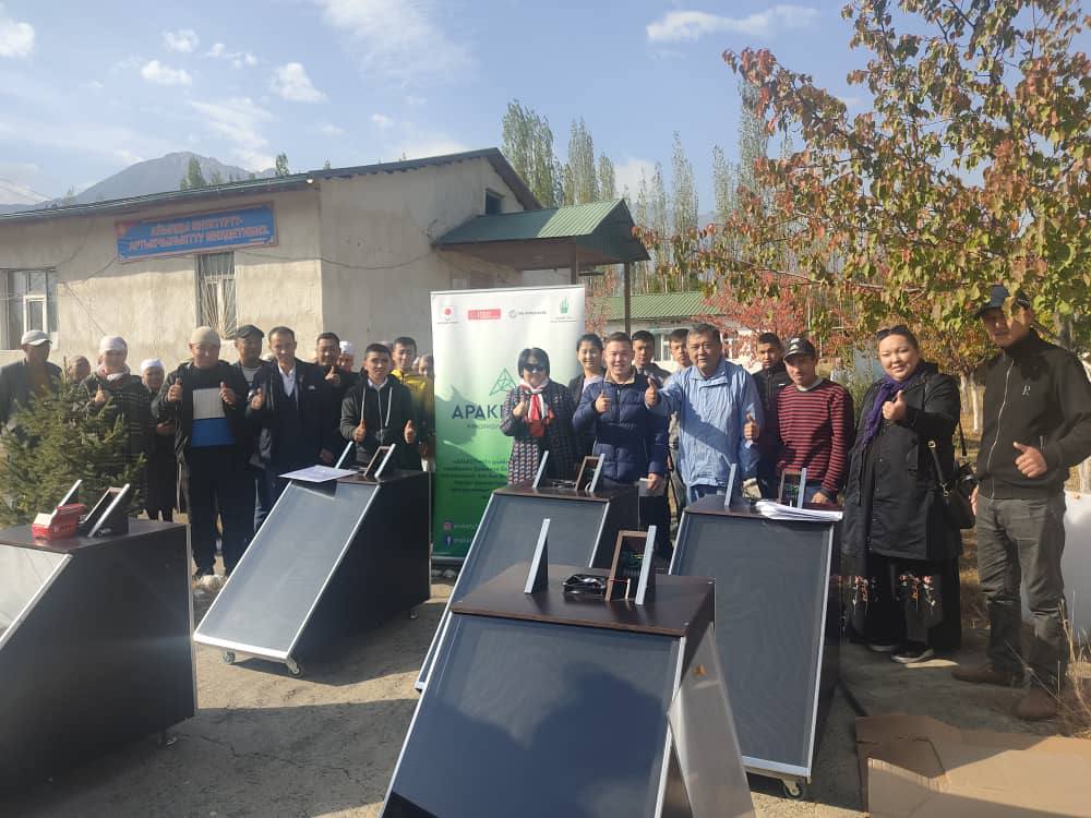 - 11 - энергосберегающих солнечных сушилок; 7 - шерсточесальных станков, 3 - аппарата вакуумной упаковки, а также 3000 шт. саженцев малины для 13 ГОИ в Баткенской области.