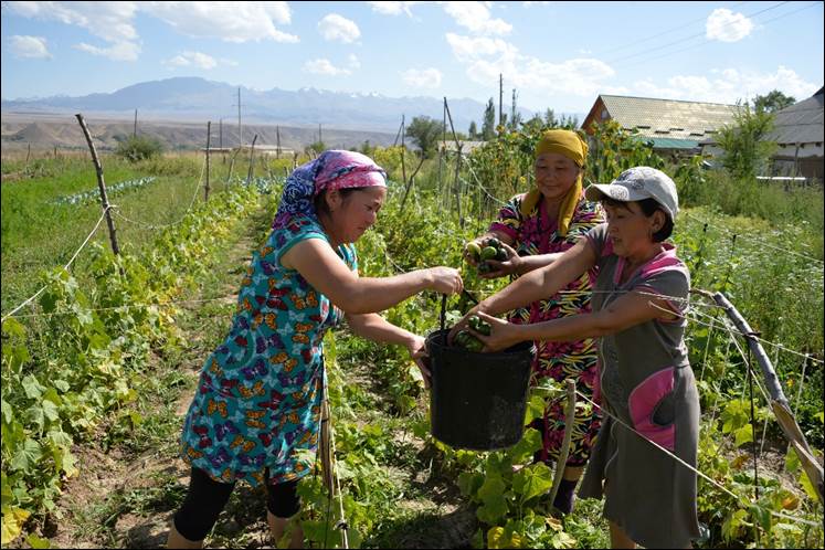 Более 64 процентов кыргызских женщин проживают в сельской местности. Они - центральный элемент в развитии сельских районов и росте национальной экономики Кыргызстана. Они составляют значительную долю рабочей силы в сельхоз секторе, играя ключевую роль в производстве продовольствия, особенно в натуральном хозяйстве и выполняя большую часть неоплачиваемой работы в сельской местности.